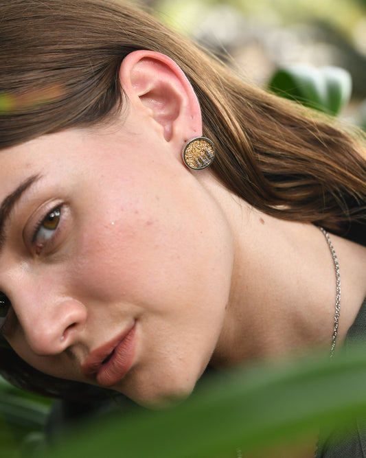 A groovy  Golden Drusy Dream Stud Earrings. Time to book your vacation! This "all eyes on me" earring is here to ensure you have your vacation jewelry looks sorted. And if you don’t have any plans (yet), let this piece mentally transpose you.