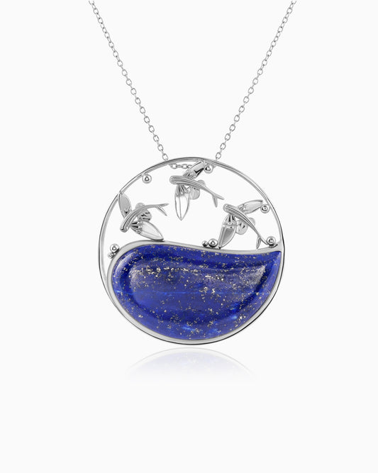 The Celestial Winged Larimar Necklace celebrates sunlight on tranquil waters. Angel-wing-inspired silver frames hold Natural Larimar, stones, capturing serenity and grace. Crafted with artisanal attention, the necklace merges ethereal storytelling with precise design, offering wearable elegance t...