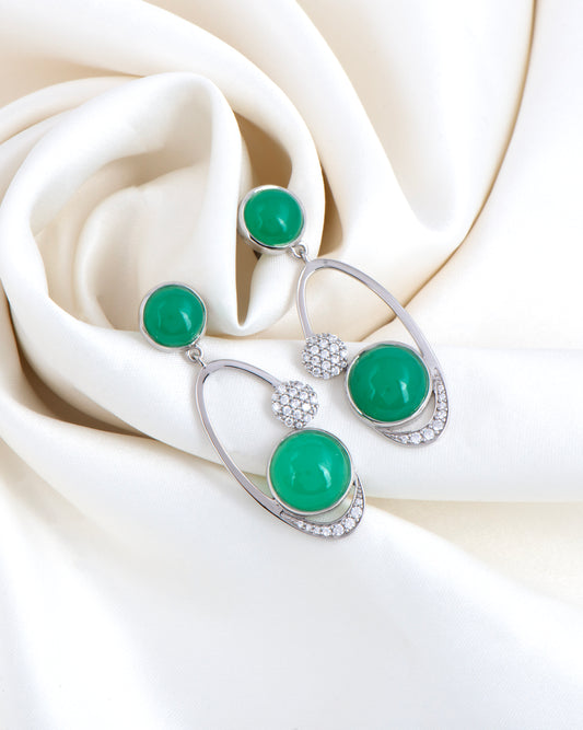 Inspired by the peaceful beauty of nature, the Green Horizon Earrings pair bold Natural Chrysoprase, stones with glimmering CZ accents. The oval shape and open design highlight the refreshing green of the chrysoprase, while the CZ details add a touch of sparkle.