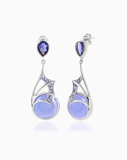 Petit design with unique Natural Chalcedony,Radiate your gracefulness with this Chalcedony and Iolite Earrings, set with Zircon! It's a customary piece when the evening calls for a fresh look.Â