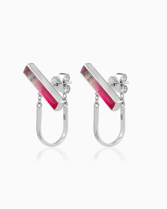 Simple but bold Rhodium Plated Pink Quartz Doublet  Bi-Color Baguette with a dangler! Pair these with your office attire to add that bold edge to your personality.