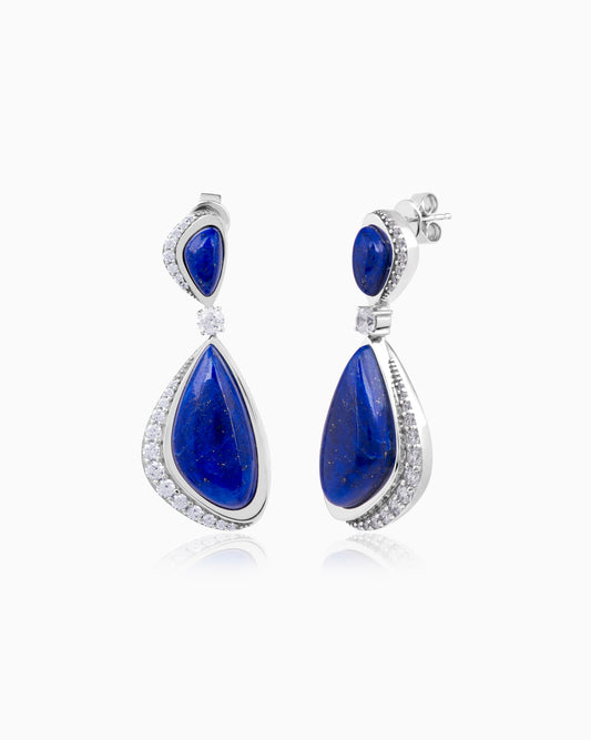 Petit design with unique Natural Lapis Lazuli,Deep blues of a Lapis Lazuli accented with the bling of Cubic Zirconia for an elegant finish. A unique drop earring design for all your themed rendezvous.