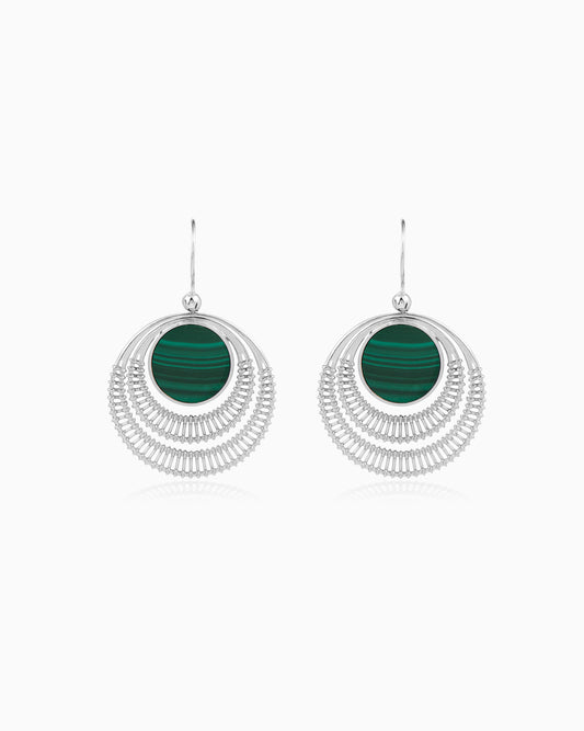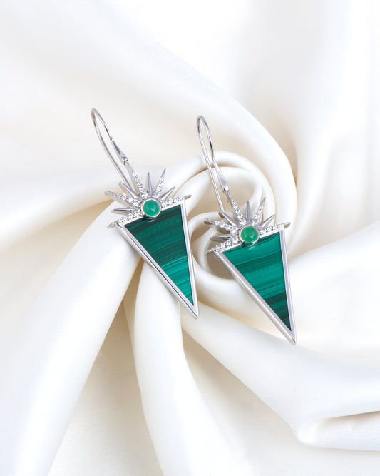 Petit design with unique Natural Malachite,A bold statement maker with Malachite and Chrysophase and with a hint of Cubic Zirconia to get all the eyes gazing on you! We like to classify this as a retro design perfect to add a fresh element to your overall look. Can't wait to see you in these! Â ...