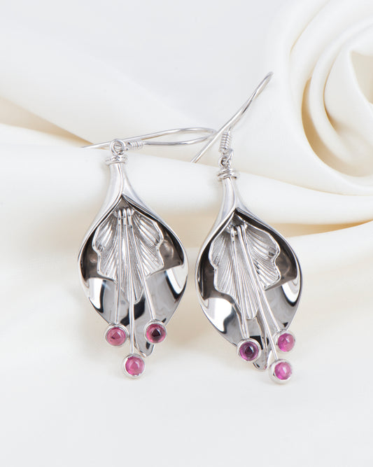 The Solara Bloom Evermore Earrings embody the spirit of perpetual bloom, with vivid Natural Rhodolite, gems cradled in sculpted rhodium-plated silver. Each petal-like form cascades gracefully, creating movement that mirrors blossoms unfurling in radiant color. Bold and expressive, the earrings sh...