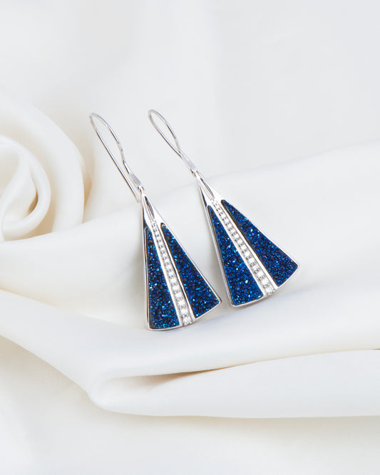Upgrade your eardrop with our Flat Drusy Danglers. An exquisitie design with detailed stone faceting for a luxurious look. Our master stylists recommend contrasting the deep blues with denims. Â