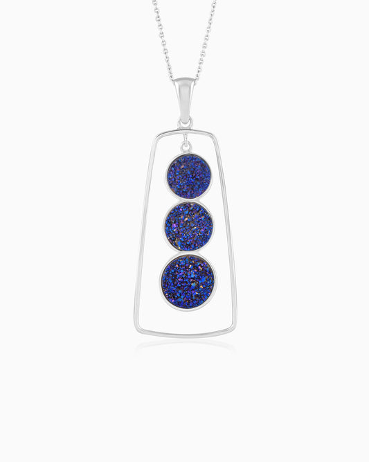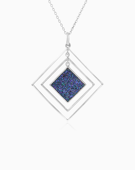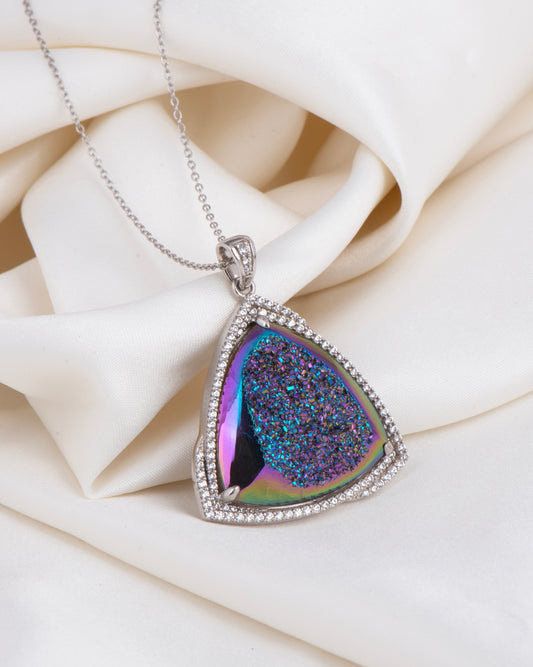 Get your hands on this Studded shimmery Caribbean Drusy Quartz Pendant for it's uniqueness. The deep color of the Caribbean quartz in sync with the shine of Caribbean Drusy is a combination seldom seen. Goes well with elegant gowns and fall dresses. Â *All pendants come without chain*