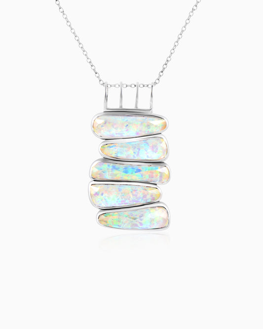 Petit design with unique Quartz doublet white opal, A crowd pleaser White Simulated Opal Quartz Doublet Pendant with fancy cut stones perfect for an intimate family gathering or a date night. When the mood is playful, this design will be your best mate.! Â *All pendants come without chain*