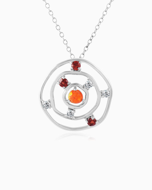 A designer delight special for the days when you want to break a routine. This natural garnet and Synthetic Fire Opal Studded pendant is intricately hand crafted for a personalized look. Feel free to pair it with your stack chains and petit pendant. Â *All pendants come without chain*