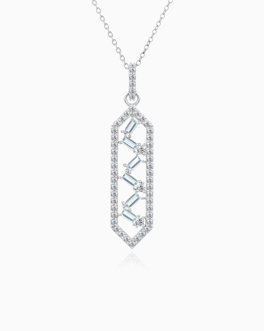 Petit design with unique Natural Aquamarine,The search for balance doesn’t end here, but this pendant inspired by Greek architecture and creation—is a reminder of our individual sense of self amongst everyday chaos. The sky blue of the Aqua marine adds subtlety to this design and look.  *All pe...