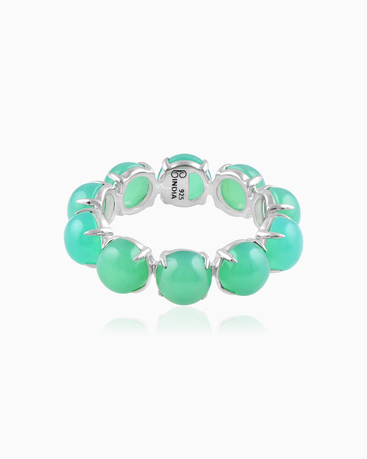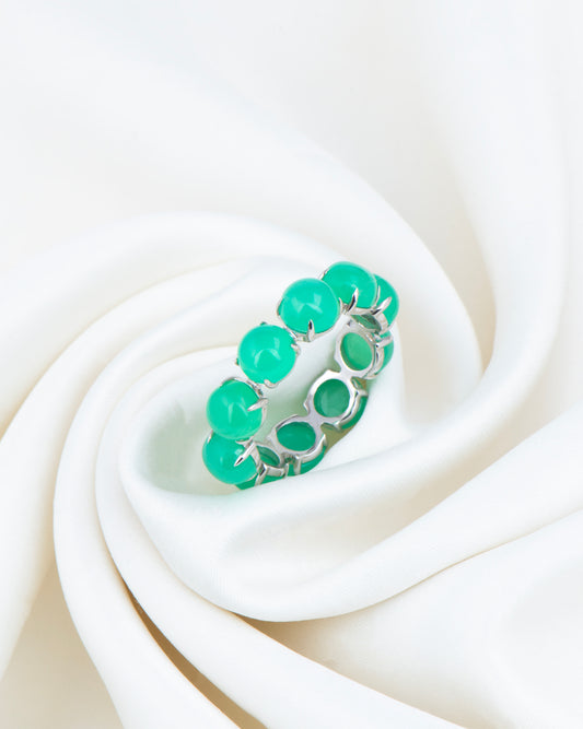 Celebrate endless elegance with the Swizz Verde Eternity Ring. Adorned with vibrant Natural Chrysoprase, gemstones that sparkle like fresh spring leaves, this ring symbolizes eternal growth and renewal. Its seamless design hugs the finger with timeless grace, perfect for marking unforgettable mom...
