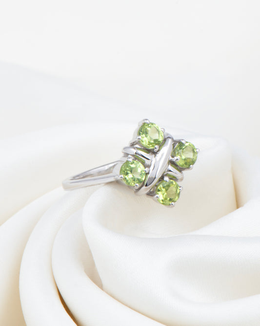 The Royal Roots Earth’s Energy Ring is a beautiful tribute to nature’s vibrance, featuring a round Natural Peridot, stone set within a halo of shimmering silver.