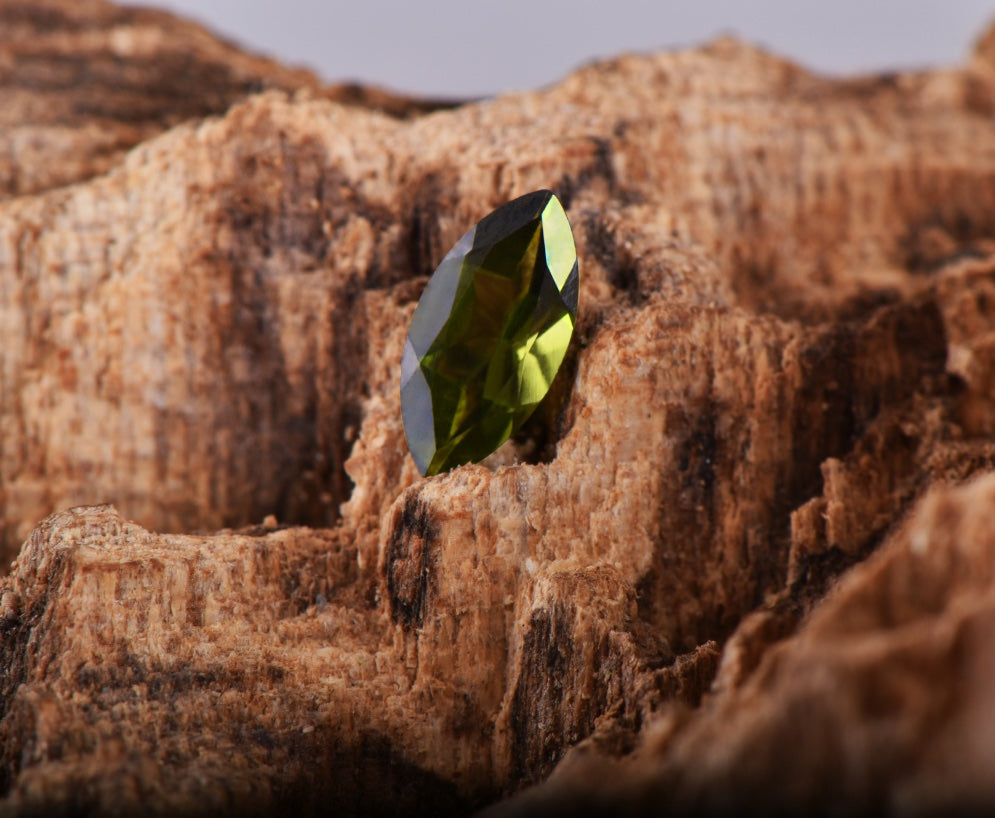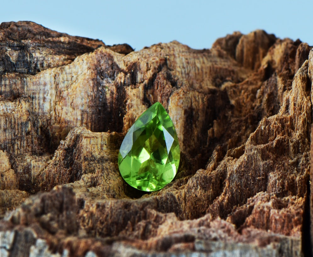 Peridot is a vibrant green gemstone that glows with a golden undertone, often called the "evening emerald" for its radiant shimmer, even in low light. Unlike many green stones, its color comes directly from the mineral itself rather than impurities, making it one of the few truly "pure" gemstones.