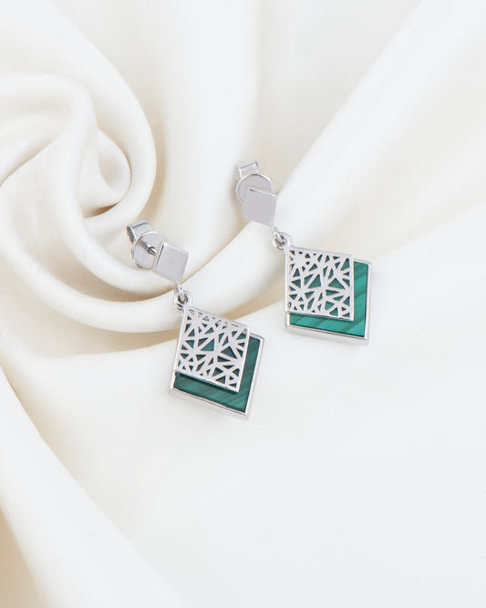 The Savanna Crest Earrings blend precise geometric silver cutouts with...
