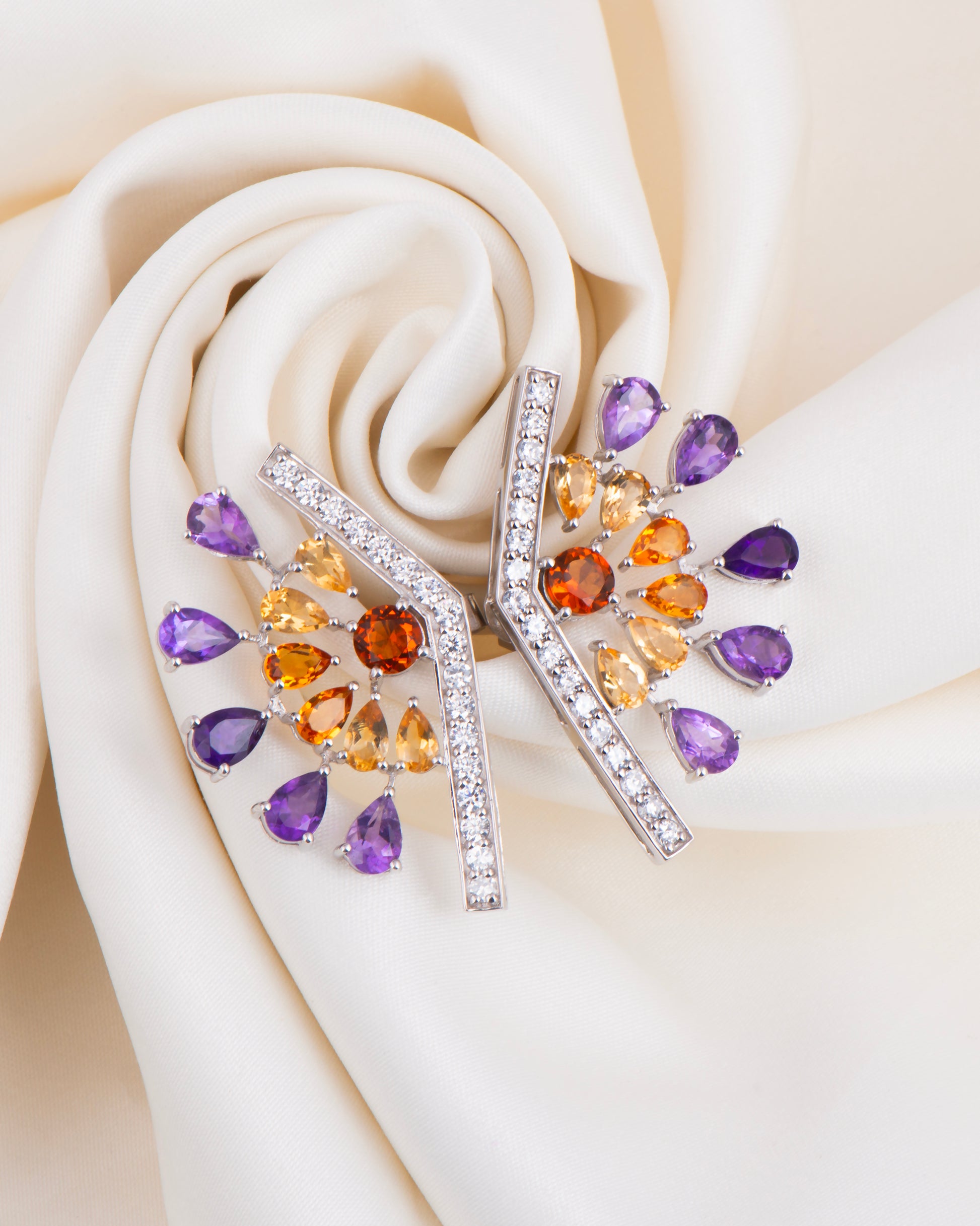 Sterling Silver Earrings with Citrine and Amethyst