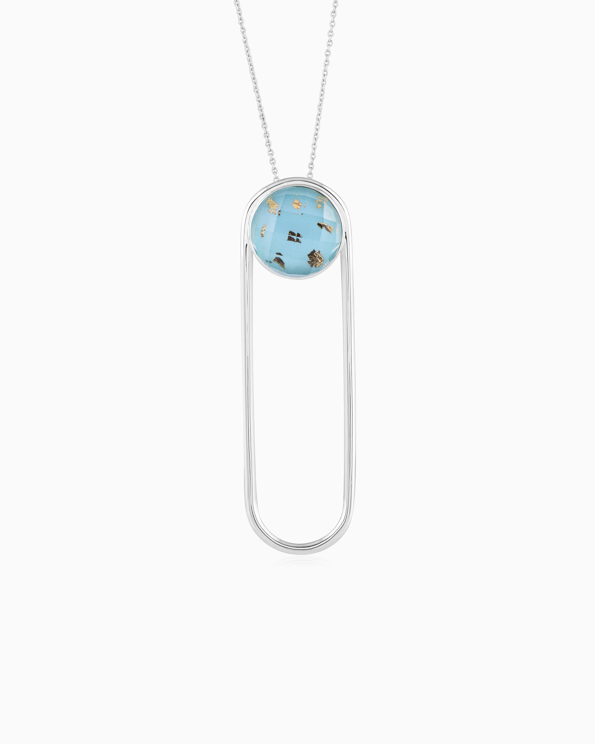 Light and comfortable Sleeping Beauty Turquoise Doublet Pendant with Gold Foil for your casual everyday needs! Picture this piece getting cuddled by a bomber jacket, perfect to set the mood.