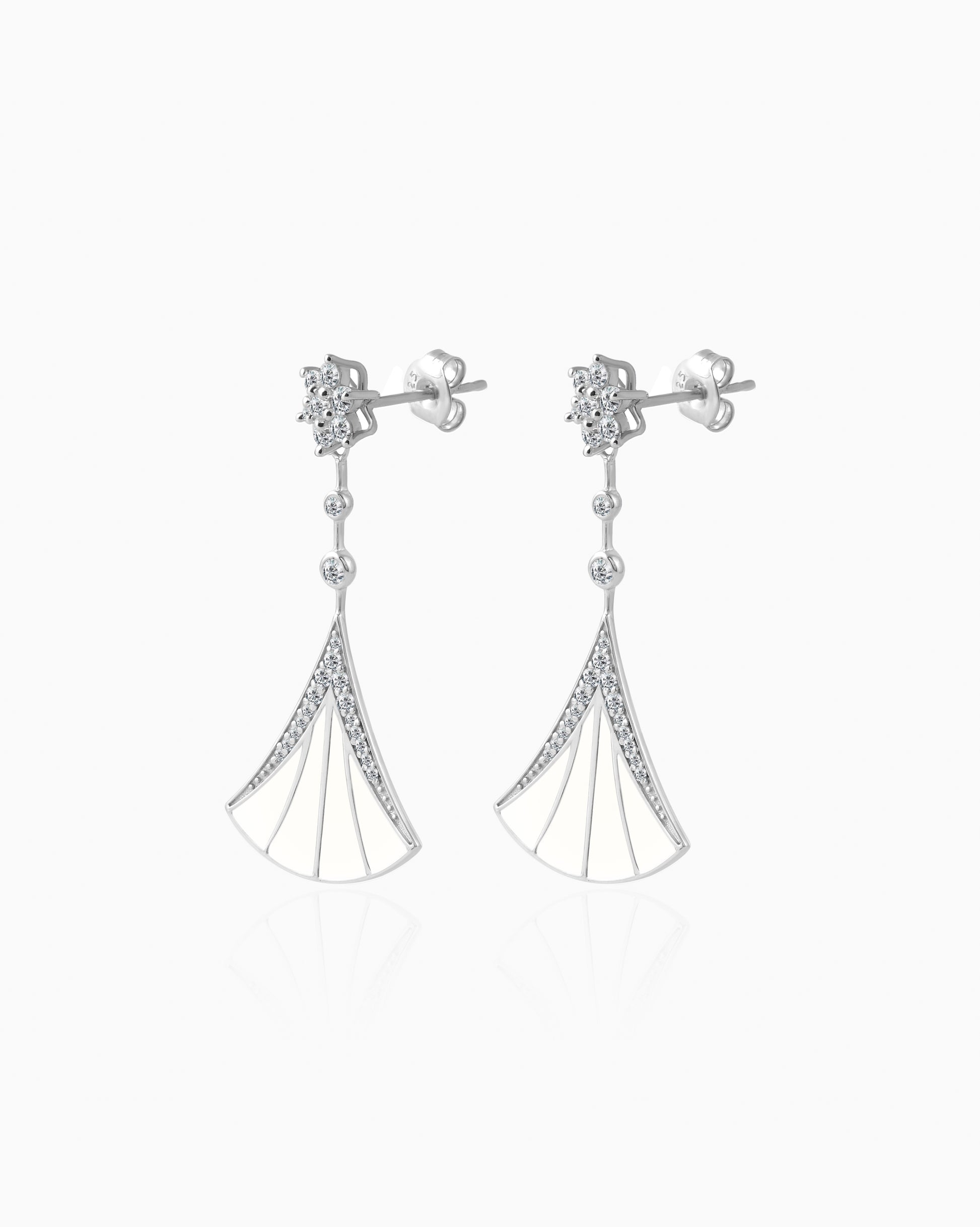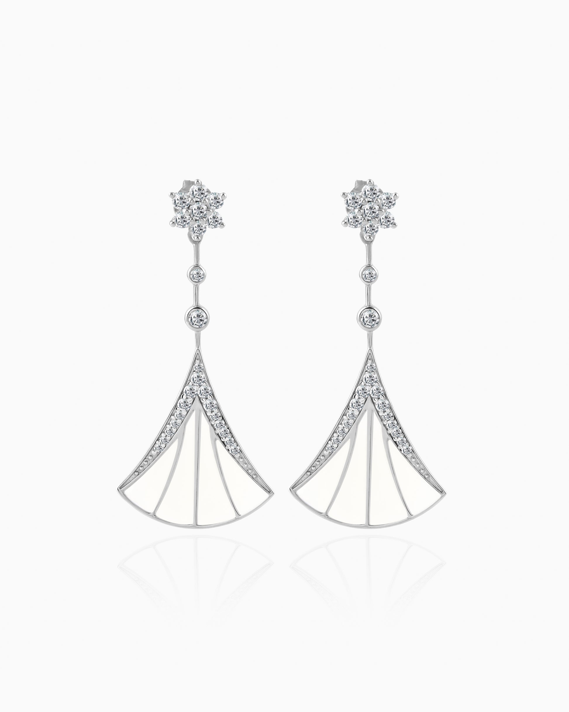 The Ivory Enamel Cascade Earrings weave silver and enamel into a composition of restraint and elegance. Handcrafted with rhodium-plated brilliance, their ivory gleam captures the serenity of moonlit nights. Though delicate in wear, they resonate with maximalist artistry: a purity that is timeless, subtle, and radiant. Their simplicity is deceptive - they are jewels that linger in memory.