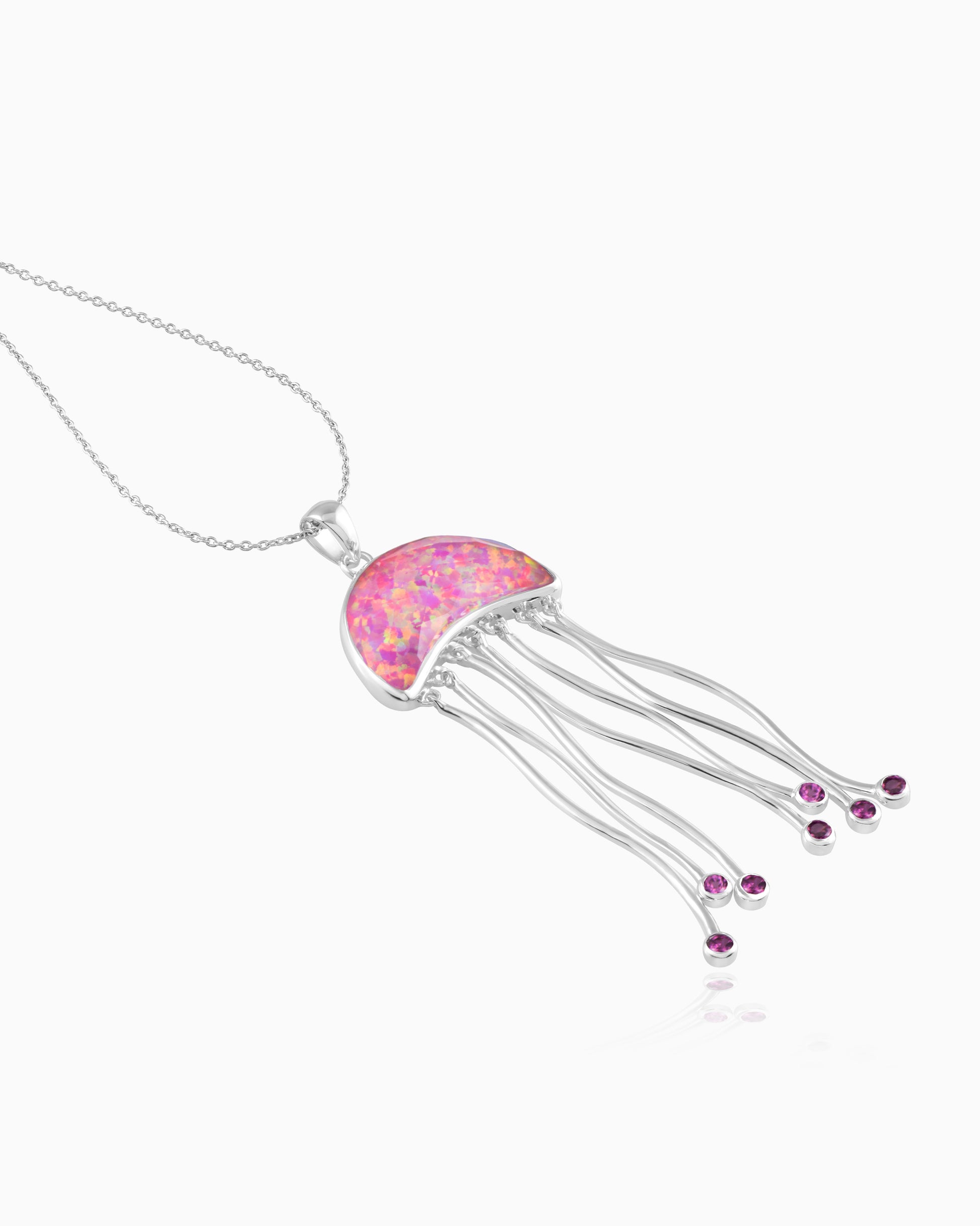 This ocean-inspired jellyfish pendant is accented with a radiant pink Doublet Opal, a captivating and unique addition to any jewelry collection.