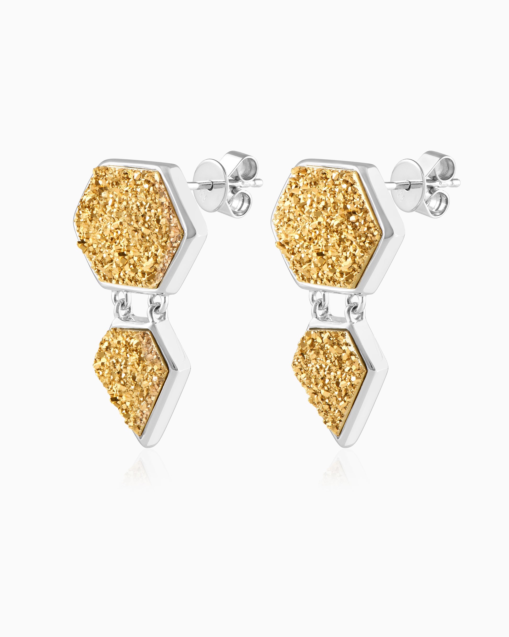 The Sun Kissed Dreamshards Earring sparkles with golden fragments of daylight, capturing the warmth of sunlit dreams. Each shard glows like a captured ray, radiating hope, joy, and boundless possibility. A radiant celebration of light and aspiration, it’s the perfect adornment for those who chase the horizon with open hearts.