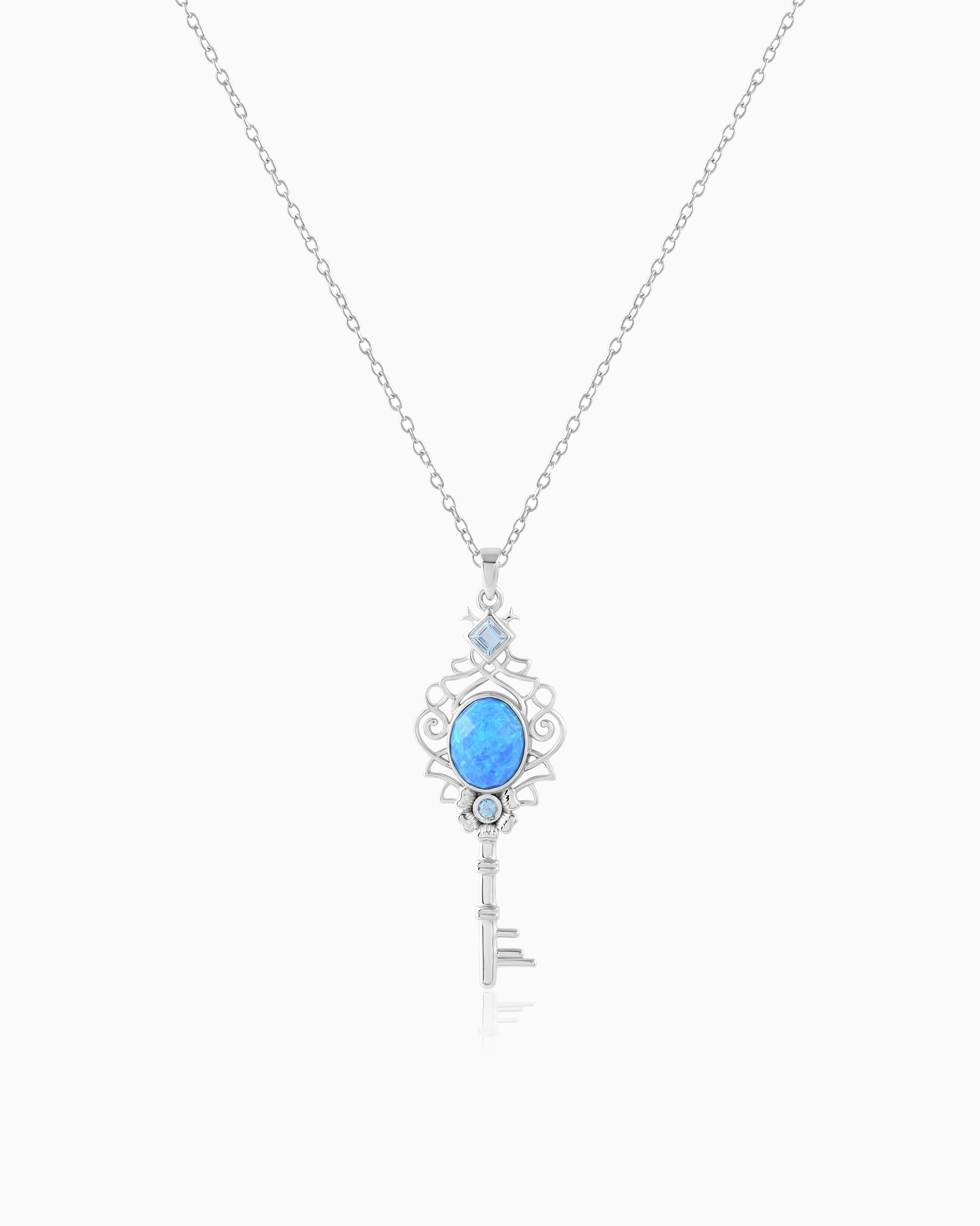 Petit design with unique Greek design key pattern studded with Blue Opal Quartz Doublet. Not to sound quirky, but this could be your "key" to complete a fashion icon look and help you to dress and impress.